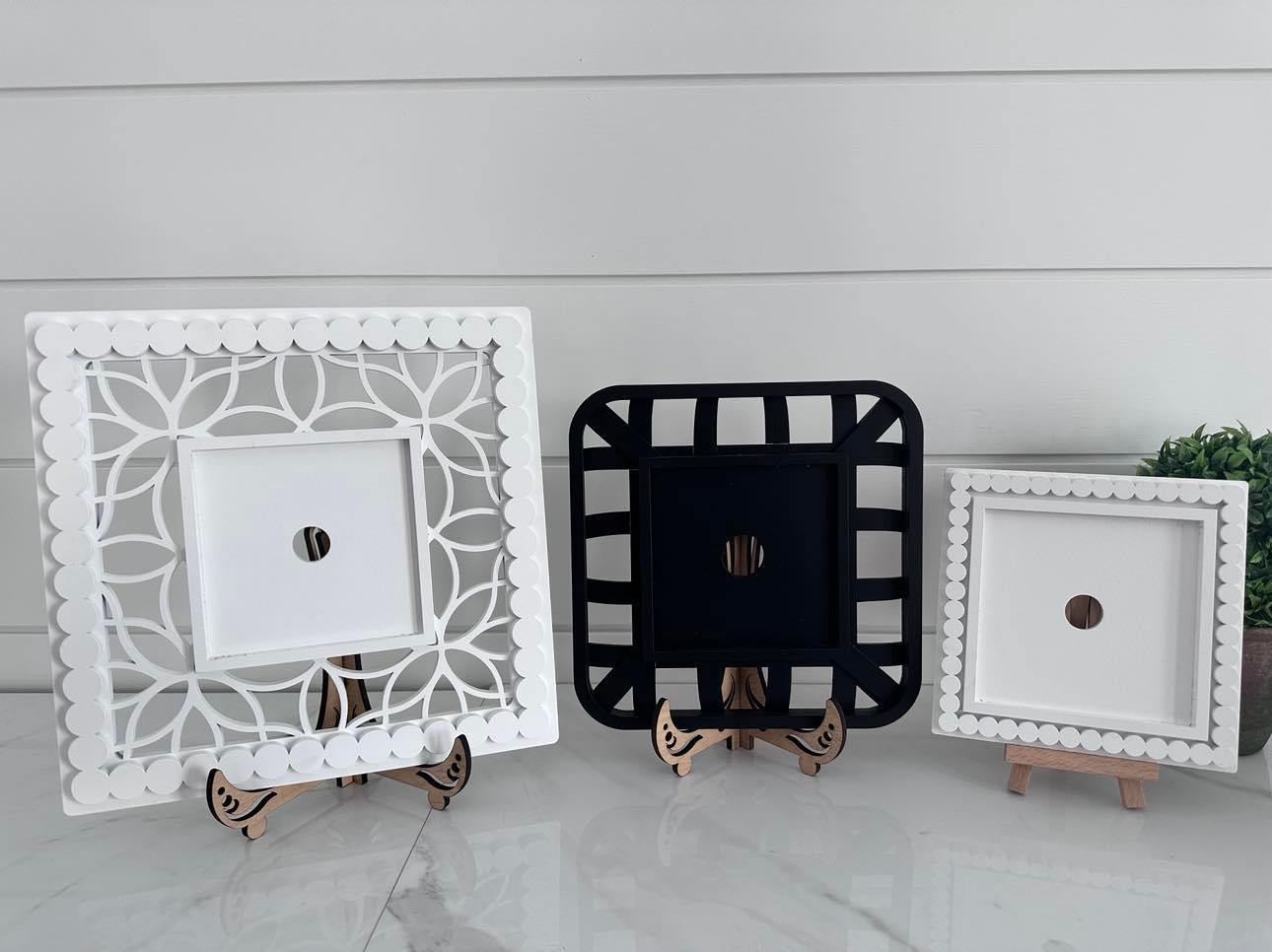 These decorative frames are a great way to display our 4.25" x 4.25" sign inserts. Three design options available and choice of black or white color.